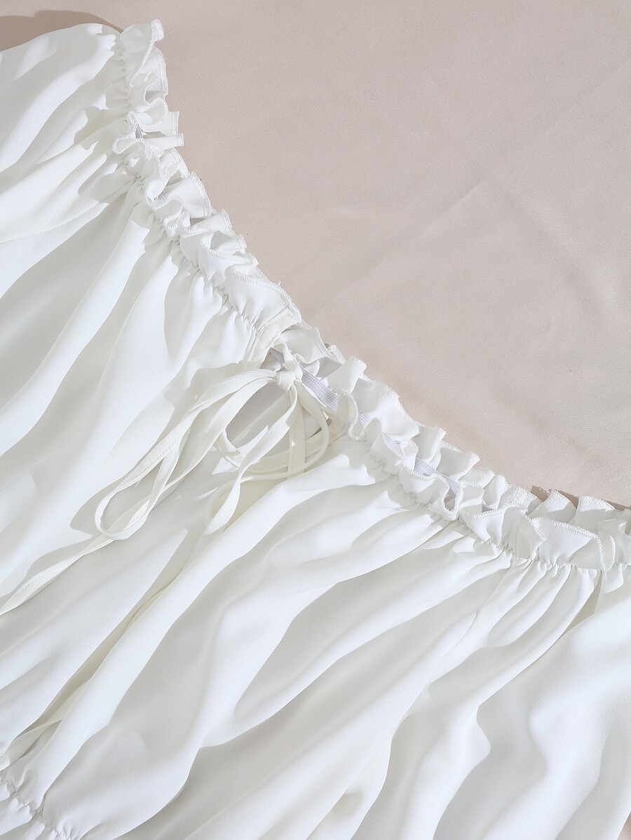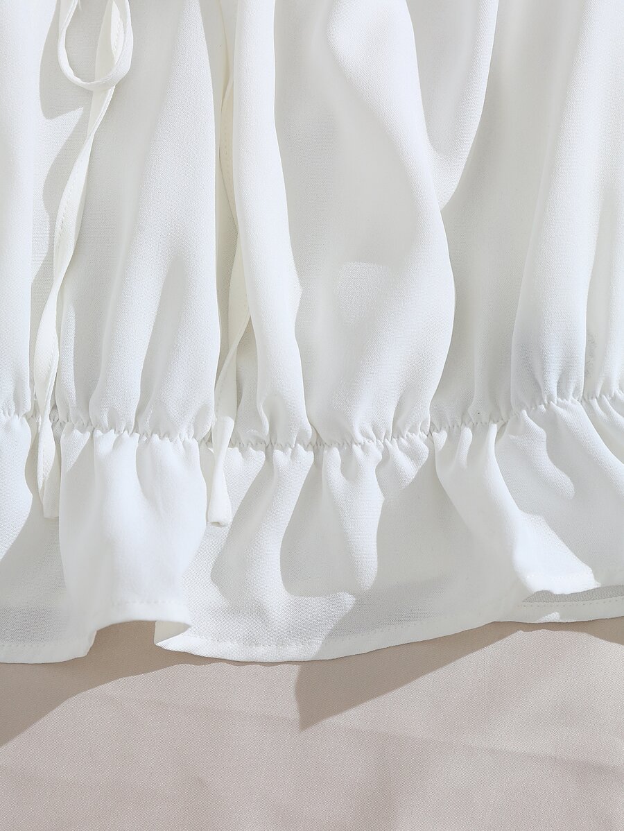 Blouse avec Top volants épaule dénudée, nœud devant, manches à volants, top avec volant