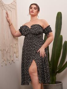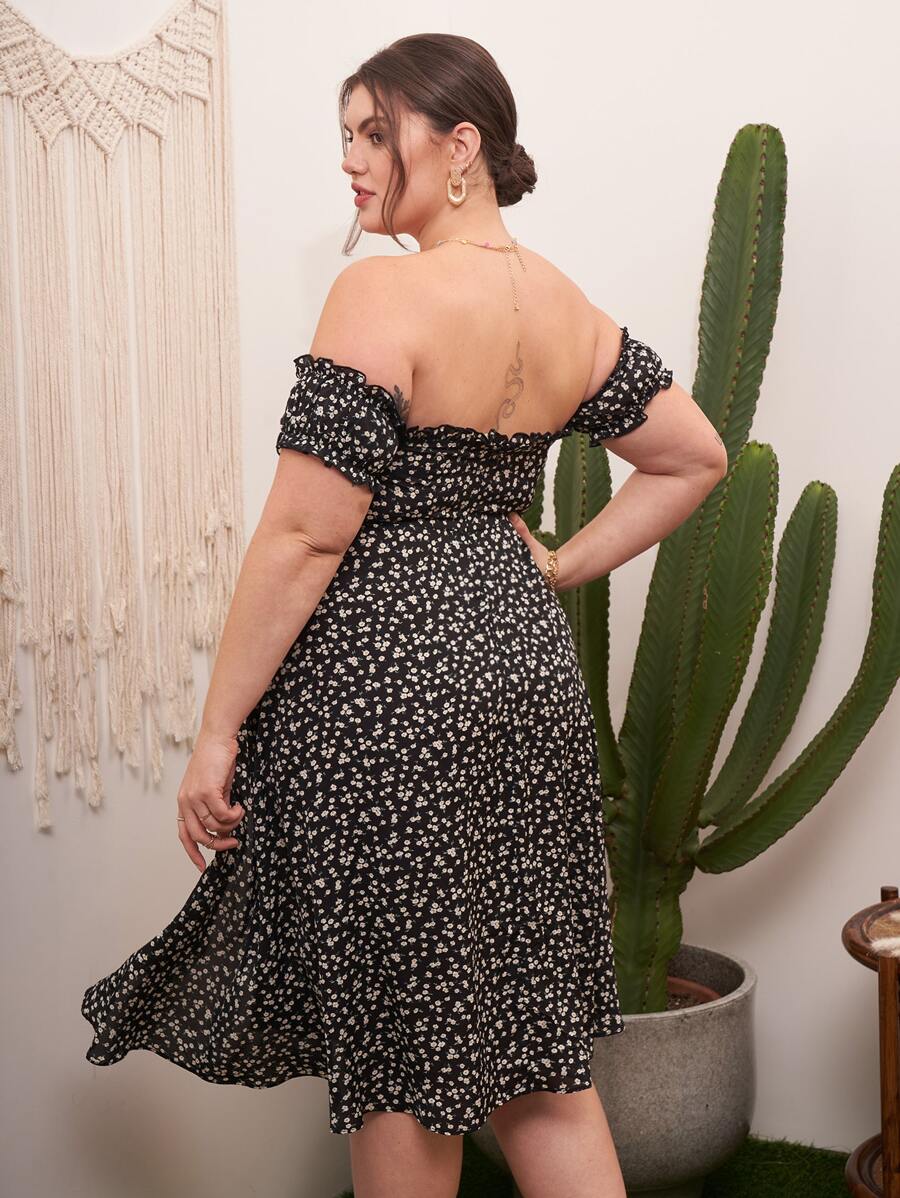Robe fleurie à ourlet asymétrique à épaules dénudées