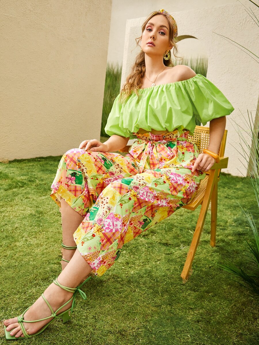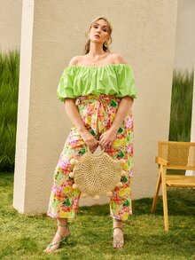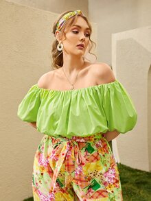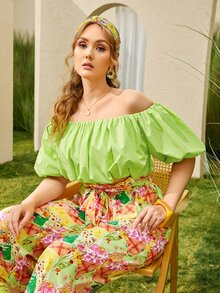 Blouse col bardot à manches bouffantes