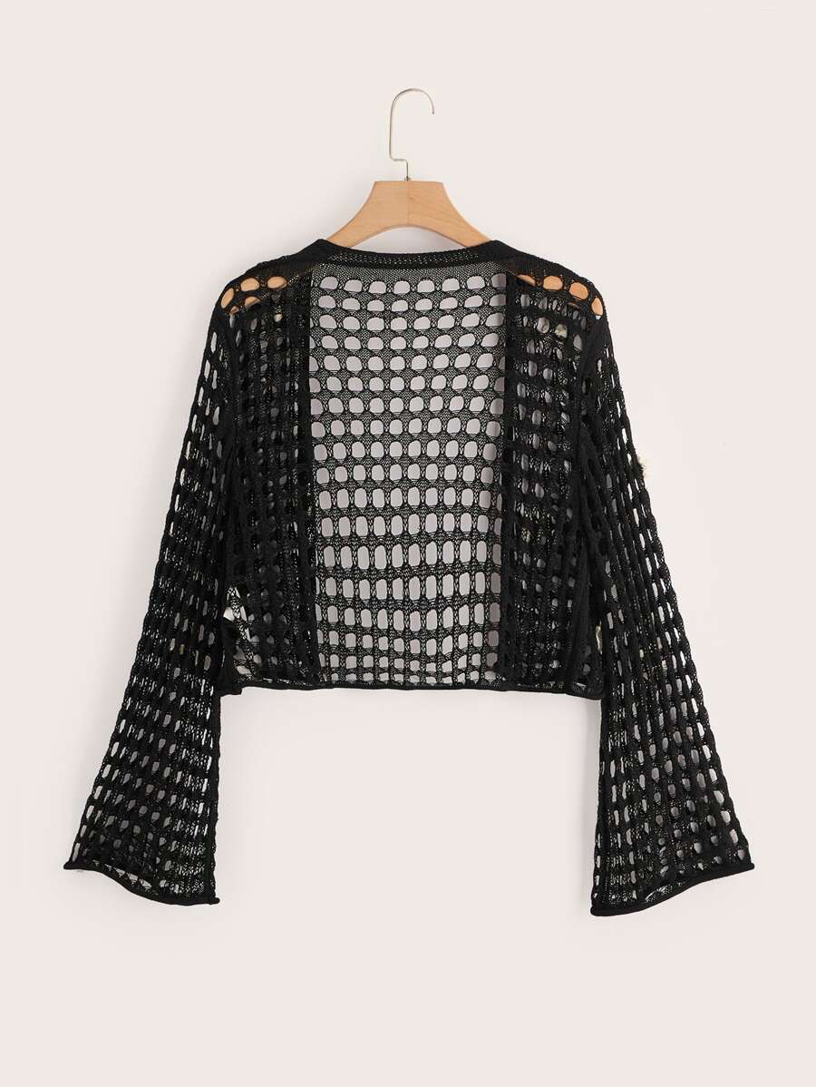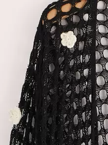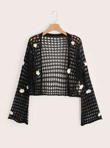 Cardigan fleuri en crochet ouvert manches évasées