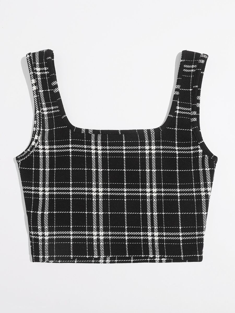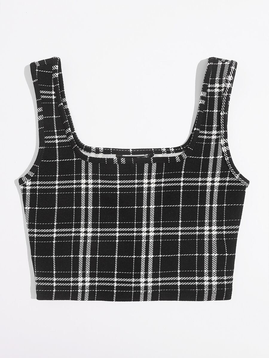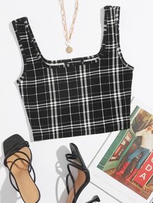 Top sans manches à carreaux