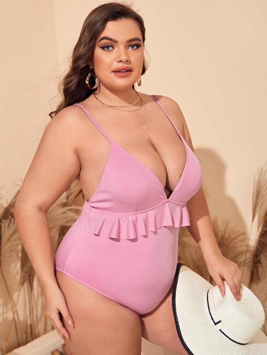 Maillot de bain une pièce côtelé à volants