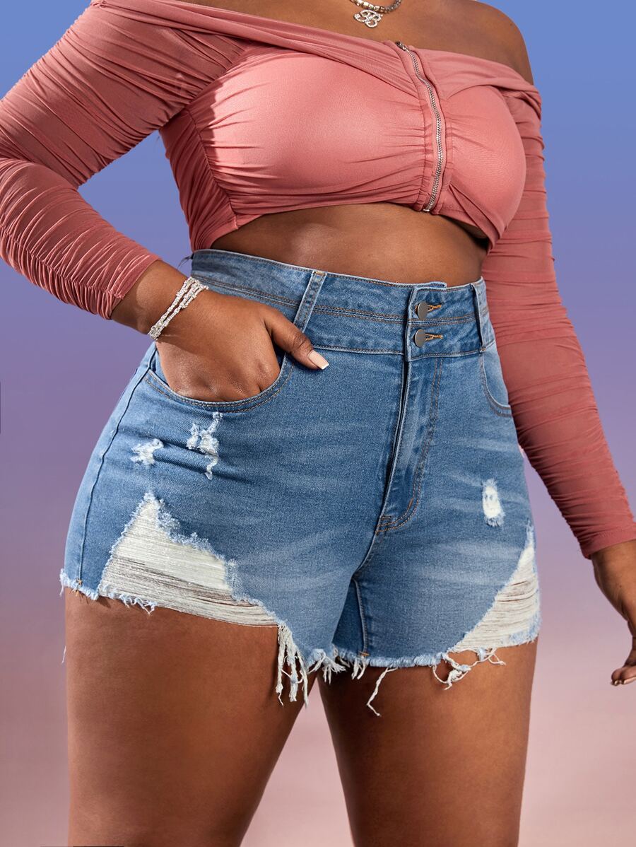 Short en jean déchiré effiloché