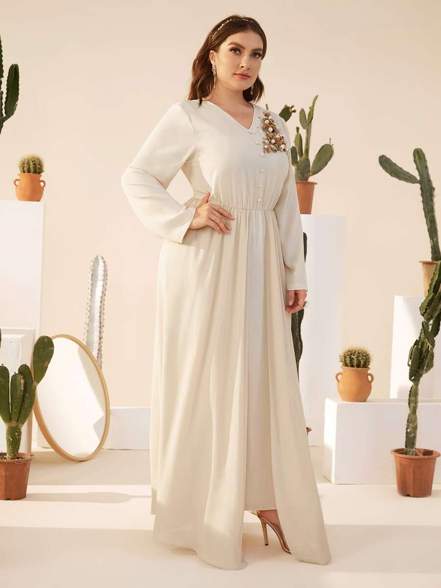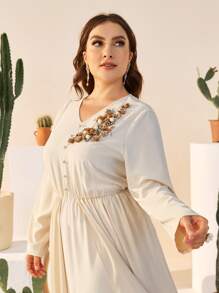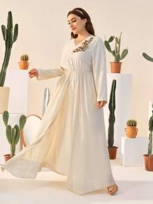 Robe unie grande taille avec détail en applique