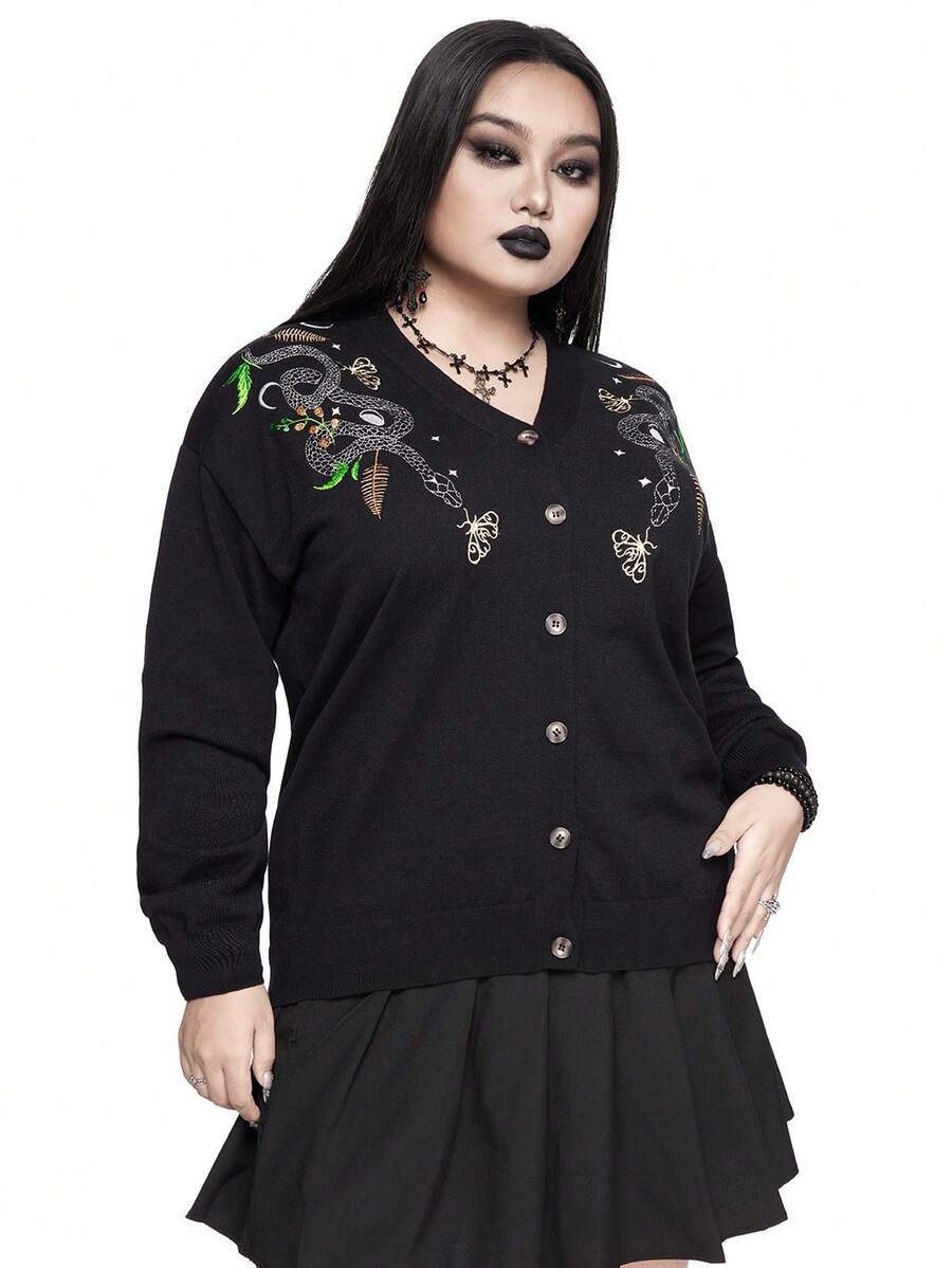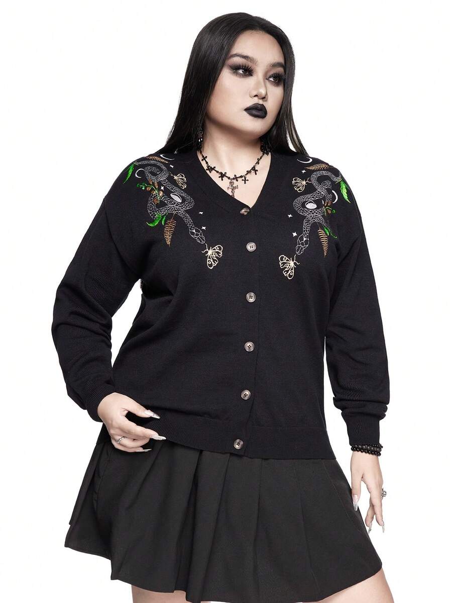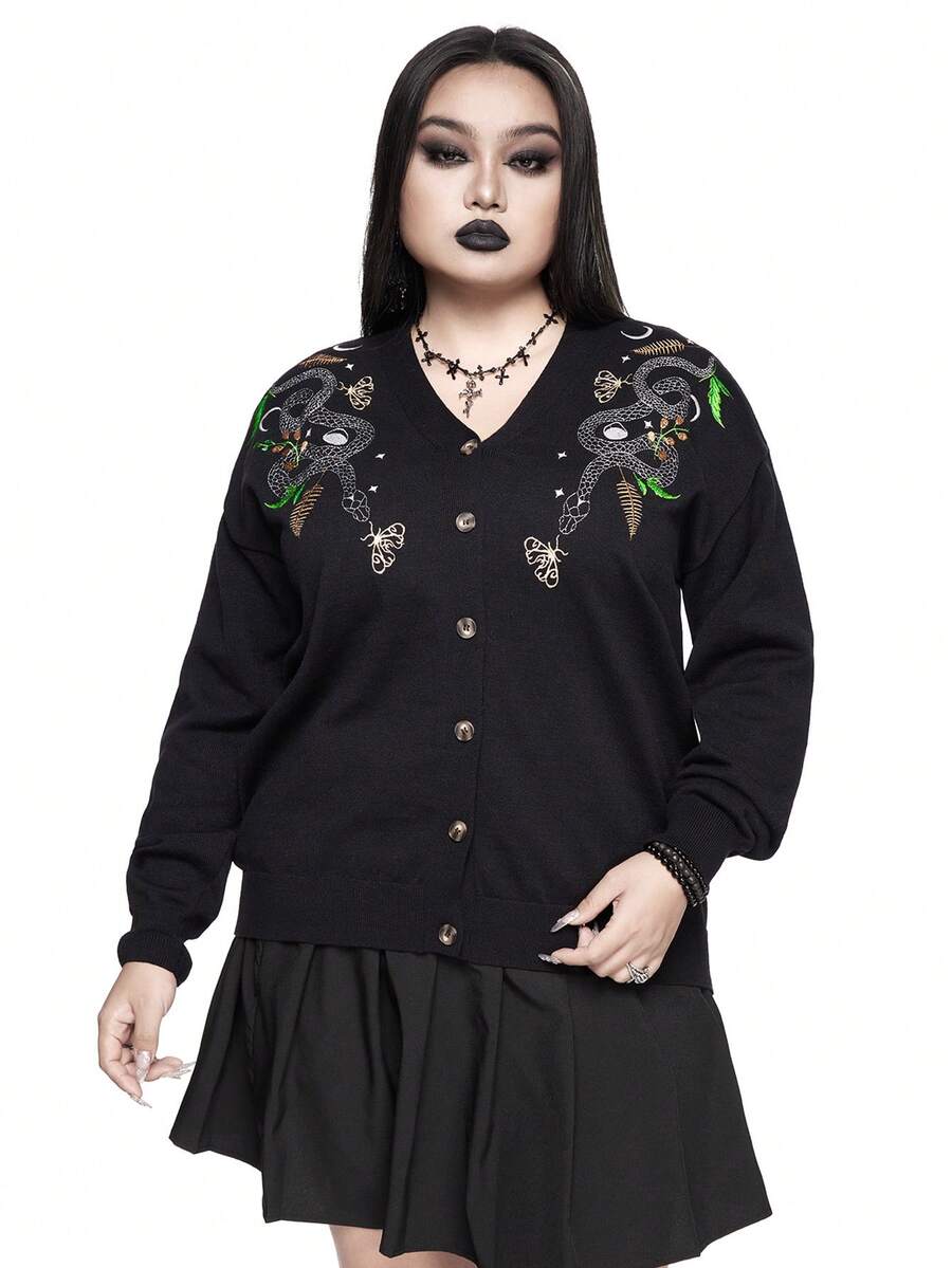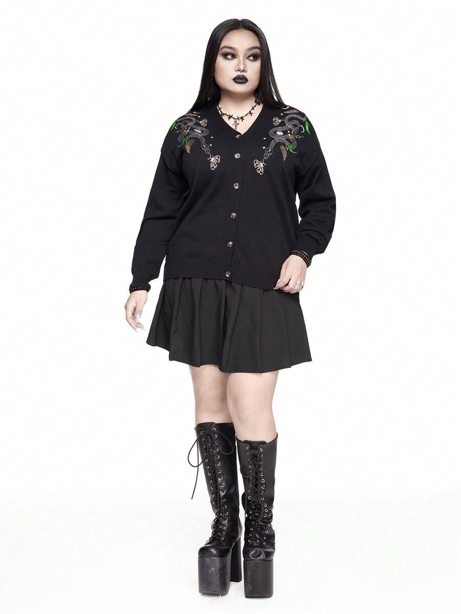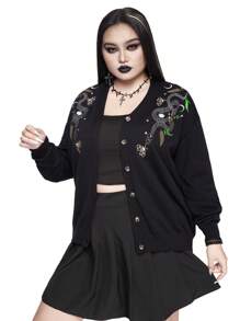 Goth Cardigan romantique mignon grande taille avec manches colorées et appliqués brodés, pour l'hiver