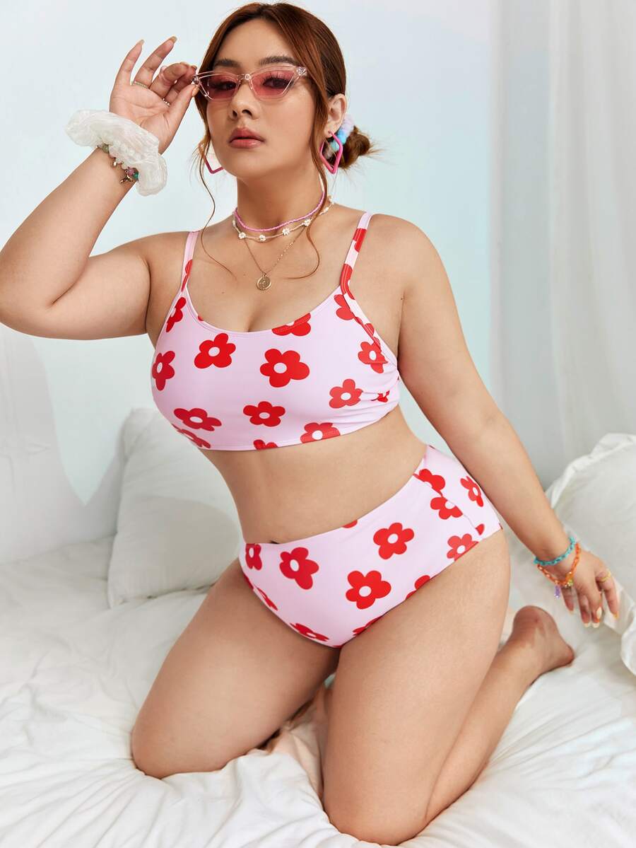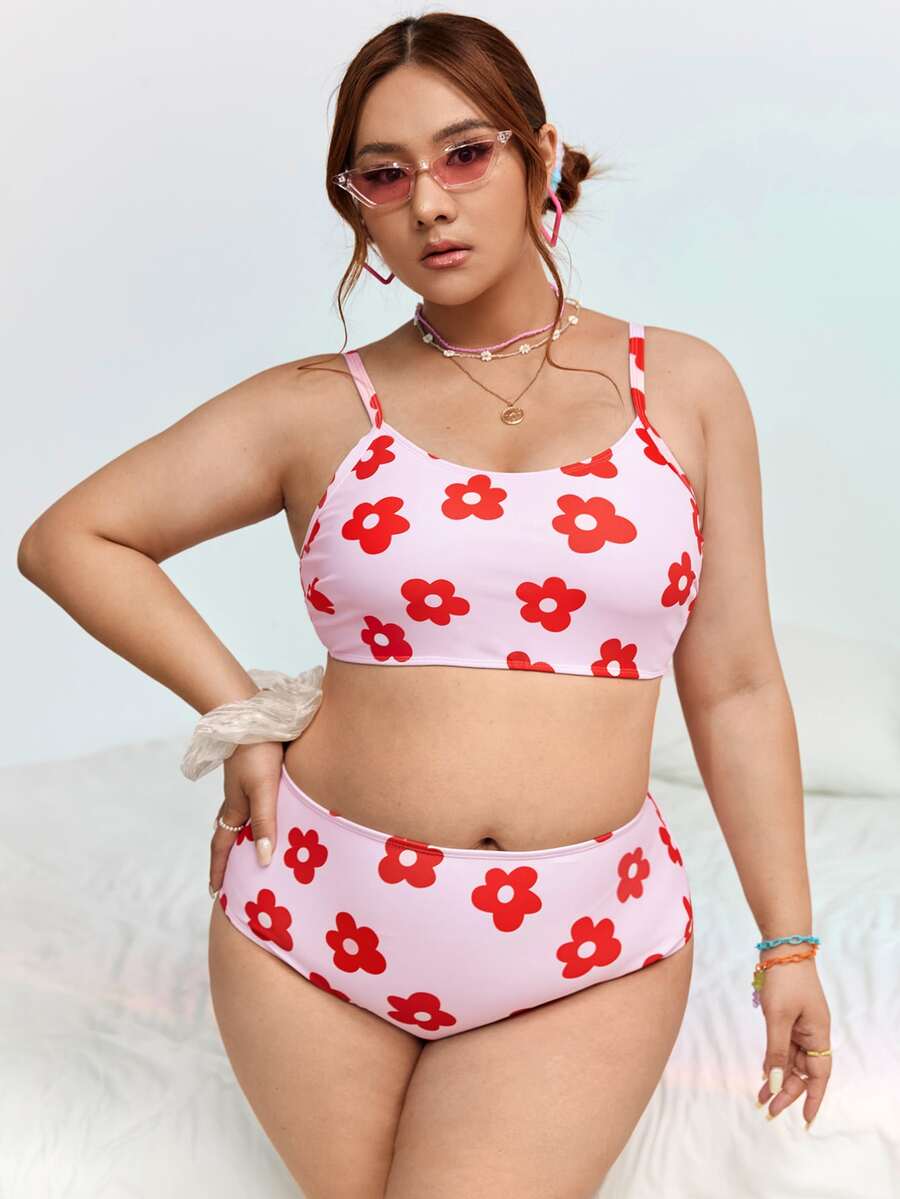 Ensemble de bikini à imprimé floral grande taille, été plage
