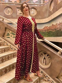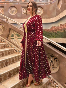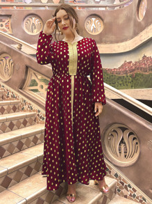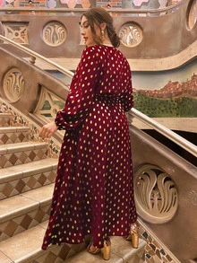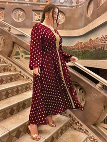 Robe manches évêque à pois dorés grande taille