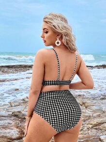Ensemble de bikini grande taille gingham à taille haute pour plage d\'été