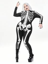 ROMWE Avant Combinaison gothique squelette avec manches longues et pantalon, grande taille, pour la fête d'Halloween