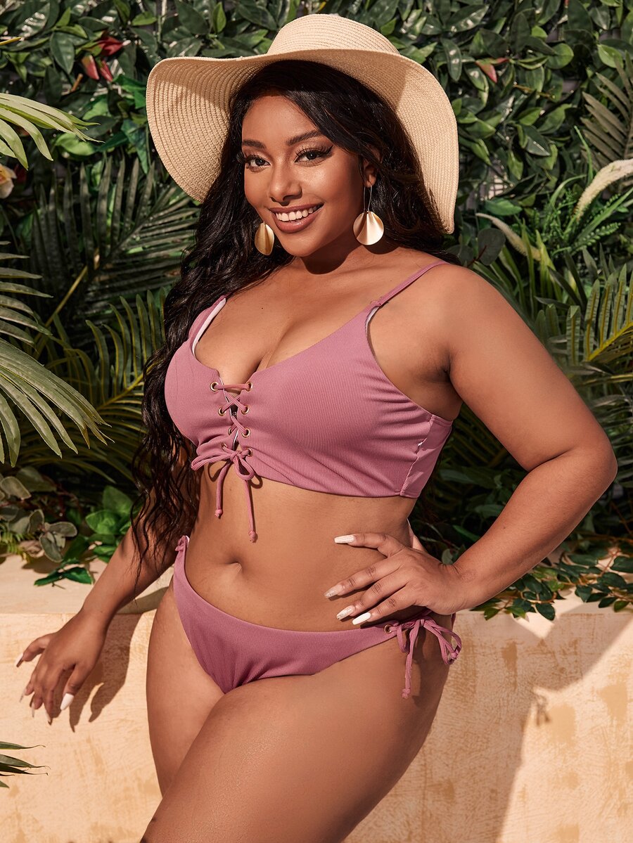Ensemble de bikini dentelle en grande taille avec œillets, boucle et laçage pour la plage d'été