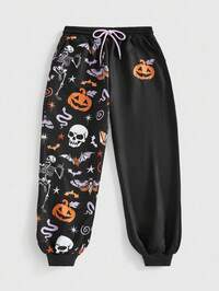 Beetlejuice | ROMWE Pantalon de jogging oversize ample à blocs de couleur gothique avec logo monstre