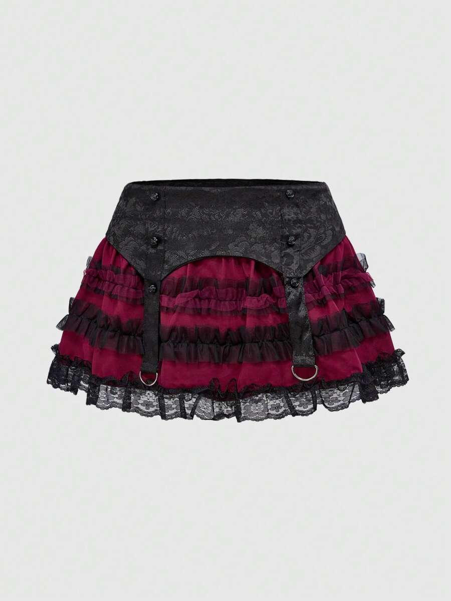 Jupe mini à volants en jacquard, tulle et dentelle pour femmes grande taille, style gothique