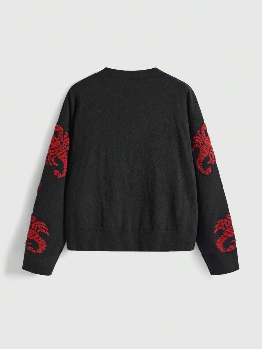 Cardigan ample en jacquard à motif de scorpion gothique sombre rétro pour femmes grandes tailles