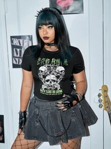 Plus T-Shirt Court Motif Tête De Mort Et Lettre