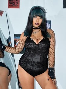 à imprimé tête de mort Body à fines brides sans en tulle Top