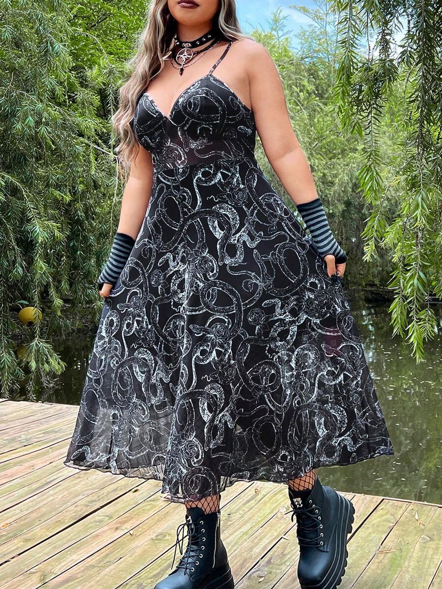 Plus Robe À Fines Brides Imprimé Serpent En Tulle Sans Gants