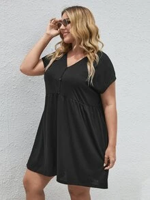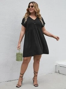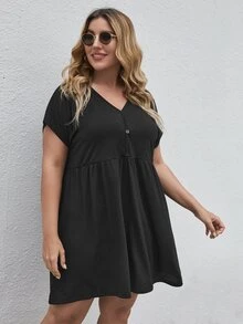 Robe babydoll unicolore avec bouton