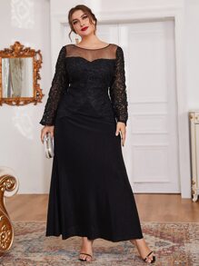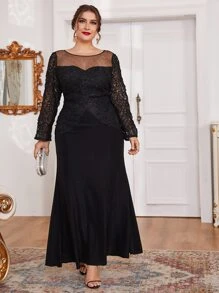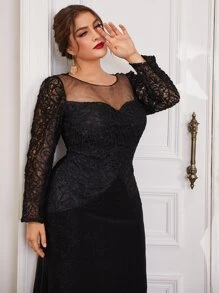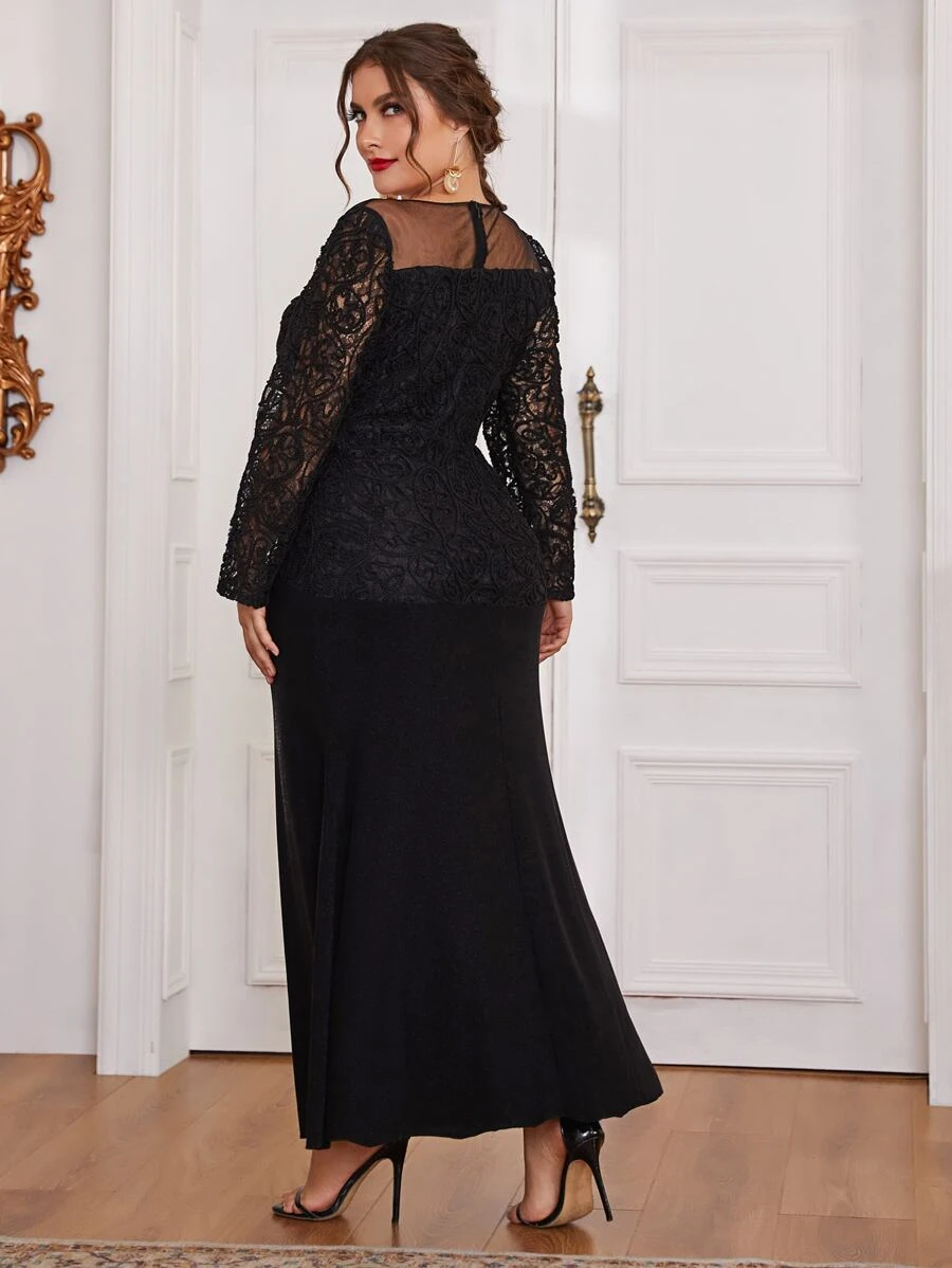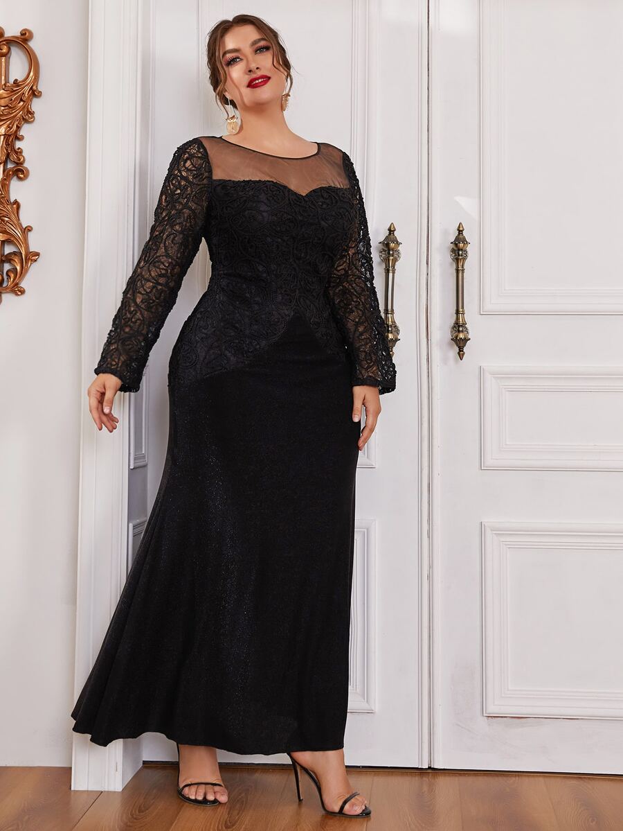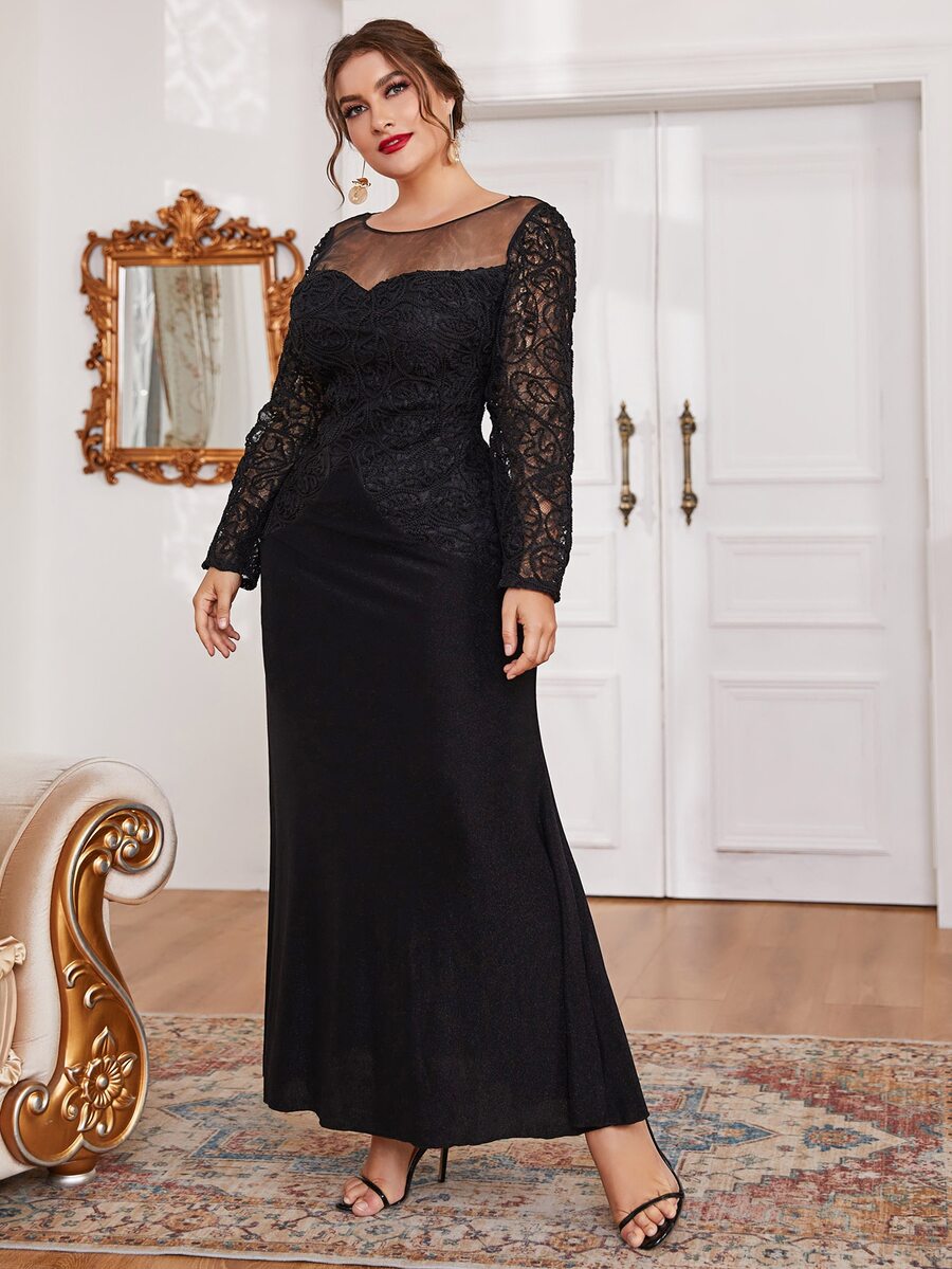 Robes grandes tailles Dentelle contrastée Glamour Unicolore