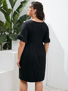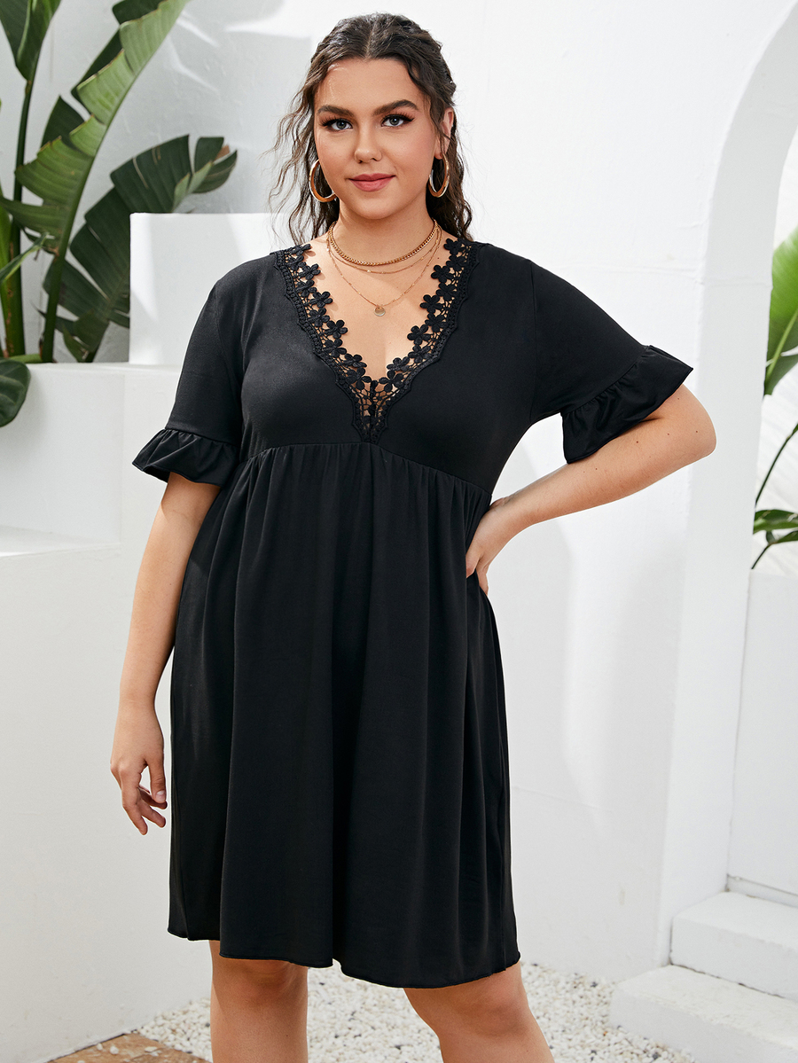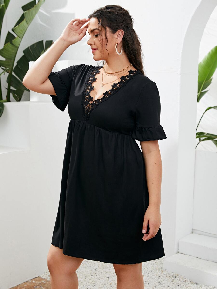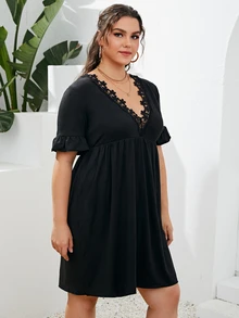 Robe trapèze unicolore ourlet en dentelle