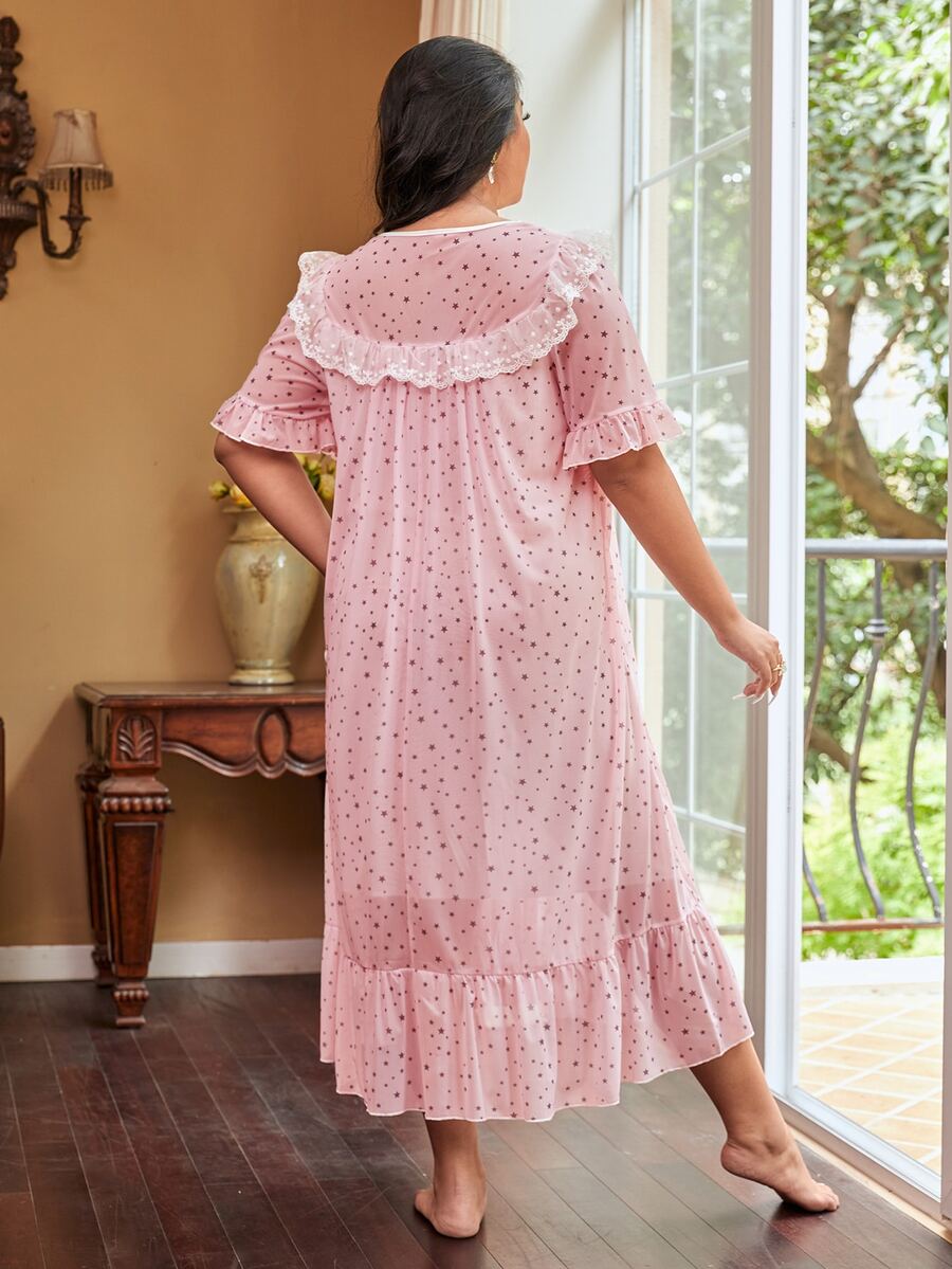 Robe de nuit à imprimé étoile en dentelle à manches évasées à volants