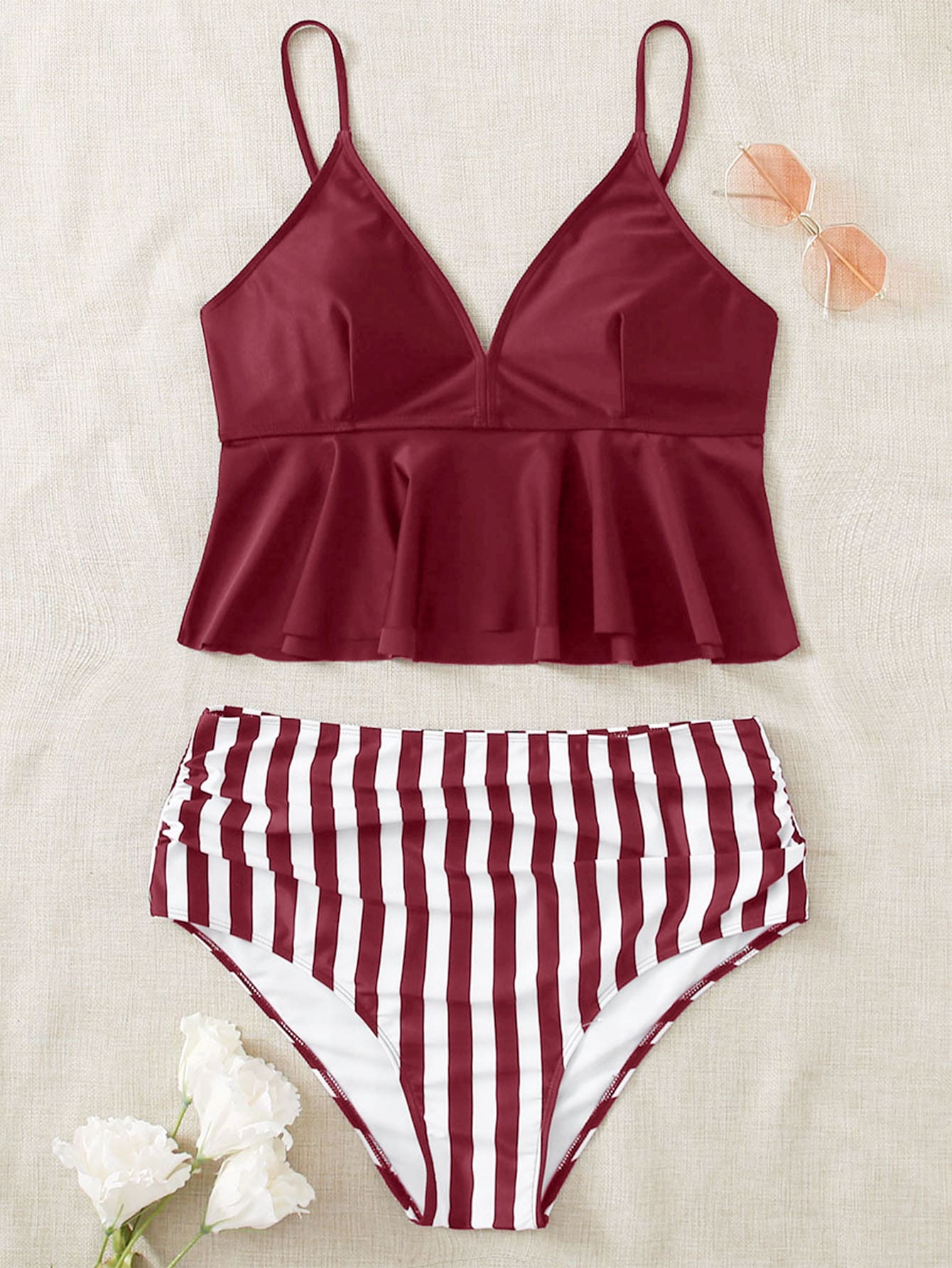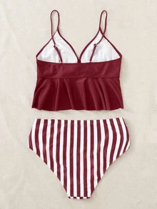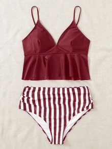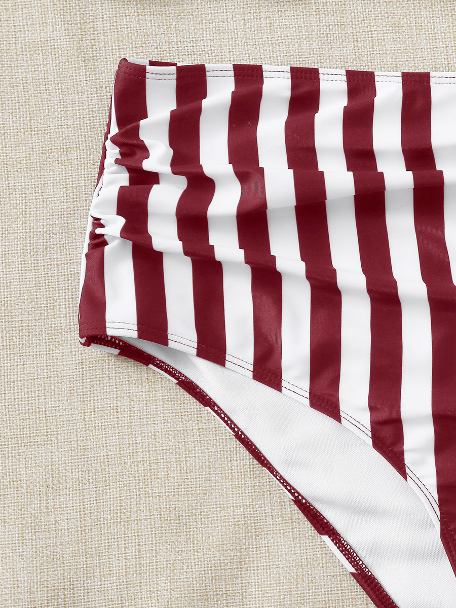 Bikini grande taille à volants et rayures, plage d'été