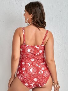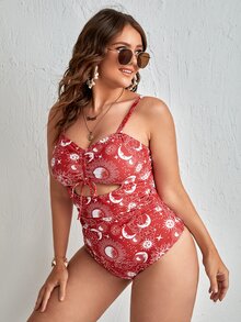 Maillot de bain une pièce à imprimé soleil et lune découpe