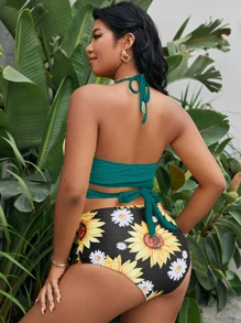 Ensemble de bikini à nœud papillon et imprimé tournesol, grande taille, pour plage d\'été