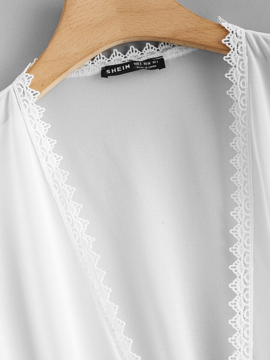 Kimono transparent à ourlet en dentelle