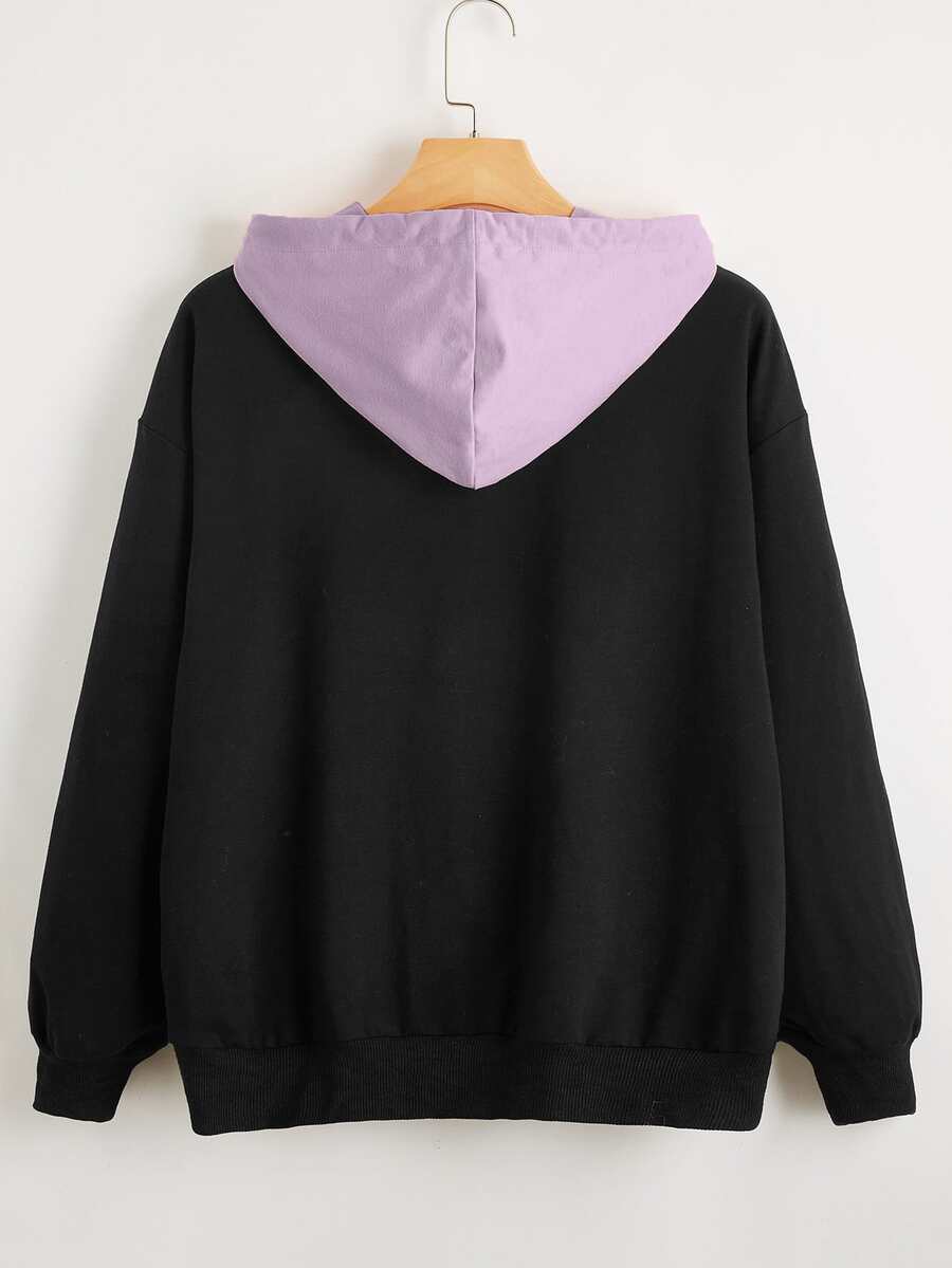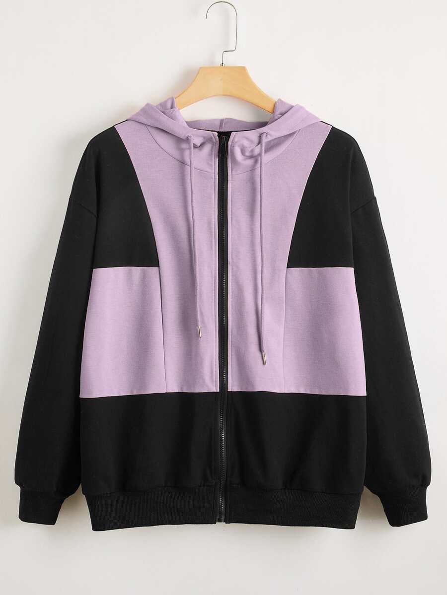 Sweat-shirt à capuche bicolore avec zip