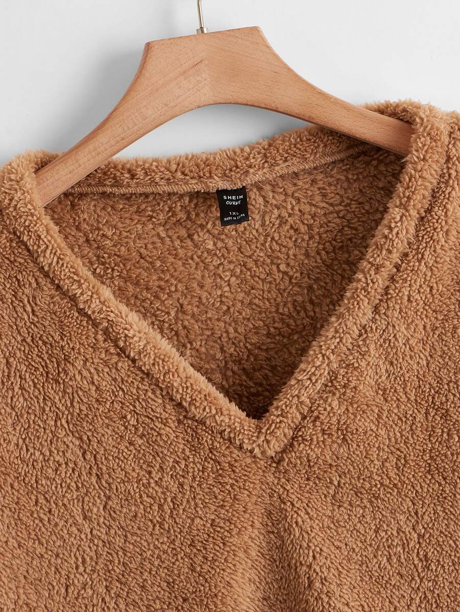 Sweat-shirt en tissu duveteux à encolure V