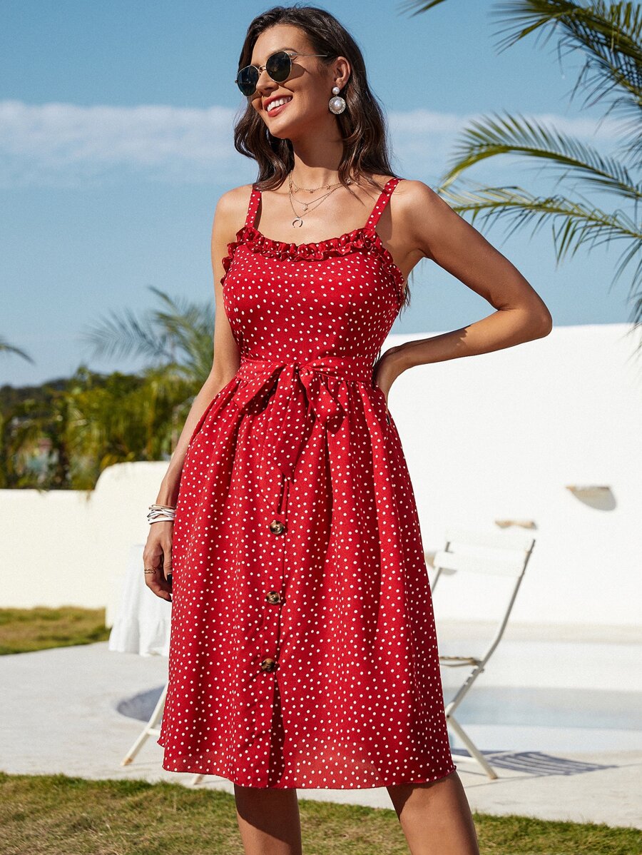 Robe longue à volants et ceinture à pois pour le Nouvel An, tenues de plage et de vacances pour femmes