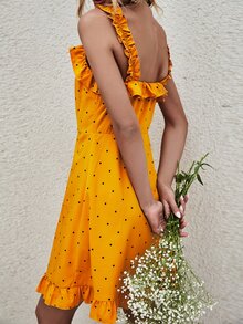 Robe à fines brides à pois à volants avec nœud