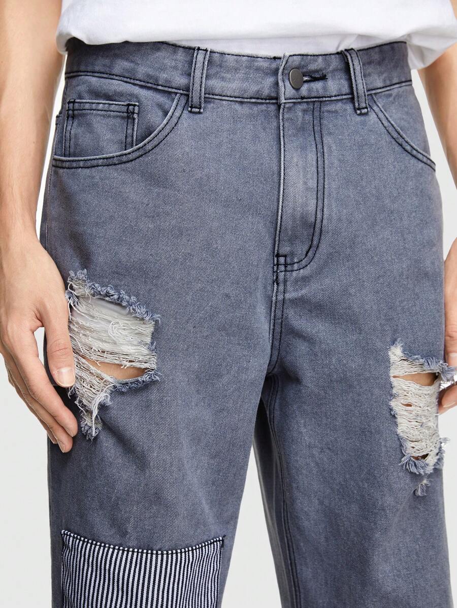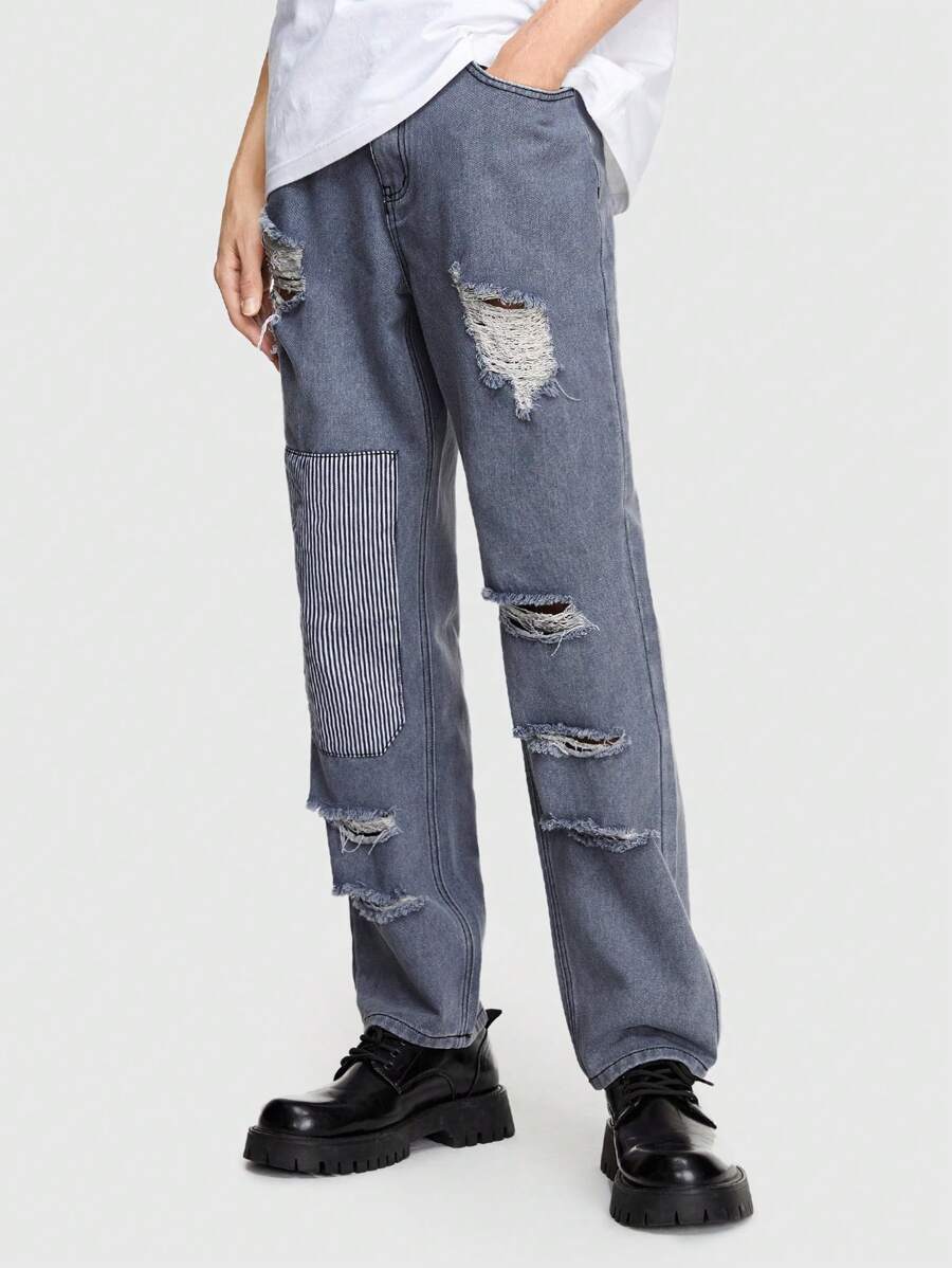 Prep Jeans Pour Homme À Jambes Droites Déchirées Sans Ceinture