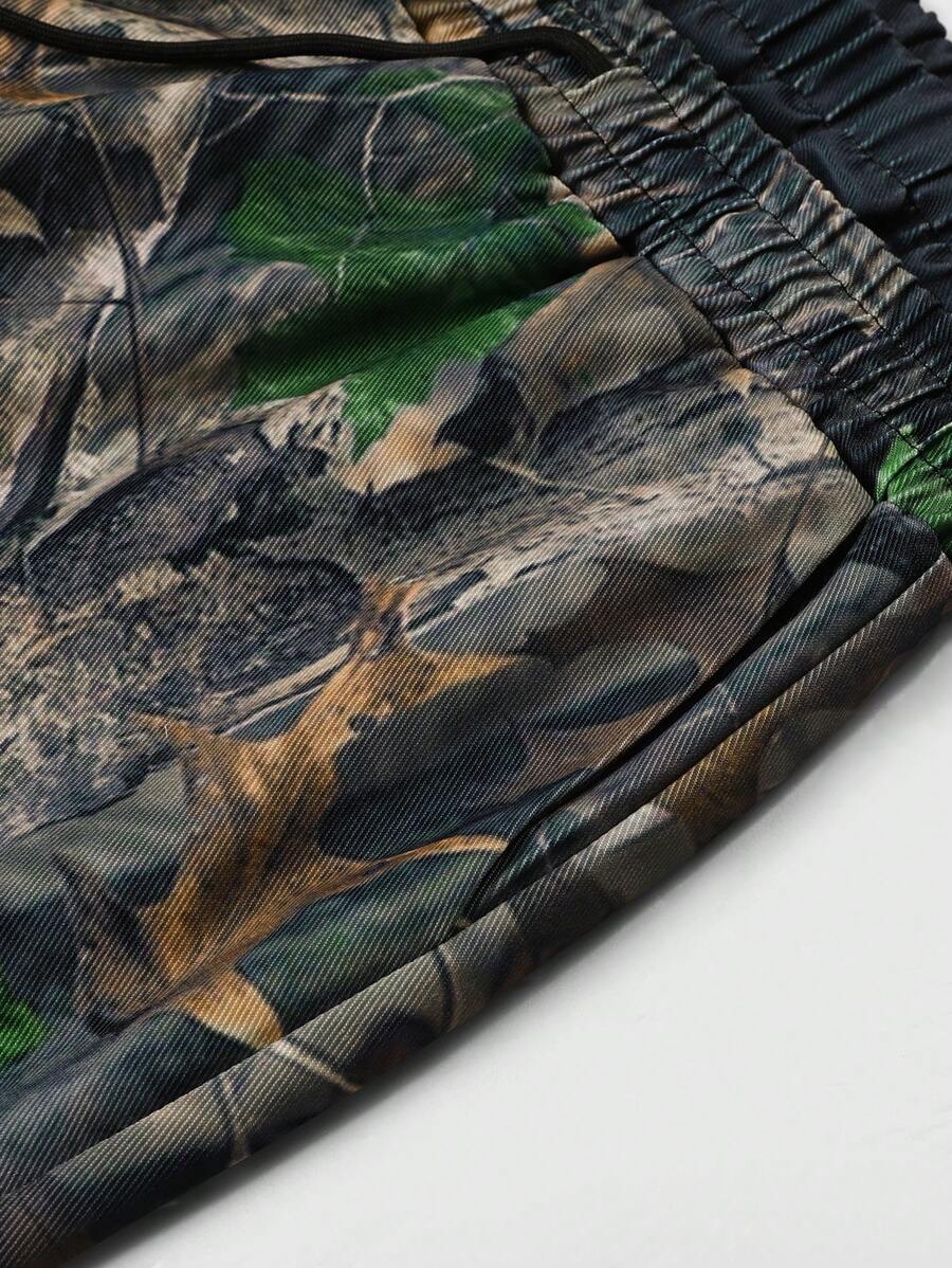Prep Pantalon décontracté et polyvalent pour homme, imprimé branche, taille élastique, ample et jambes larges, automne
