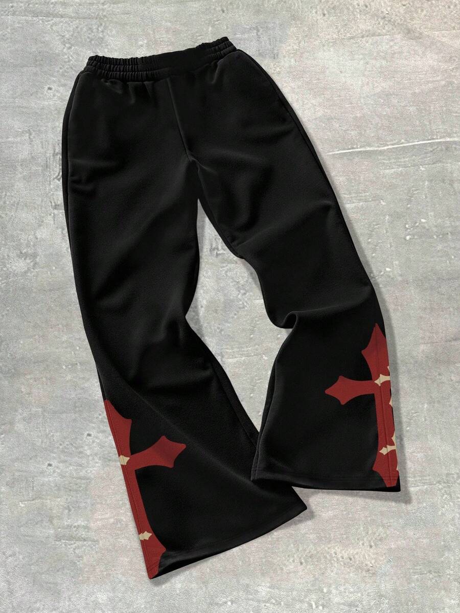 Prep Pantalon de survêtement ample décontracté avec taille à cordon de serrage et imprimé croix pour hommes