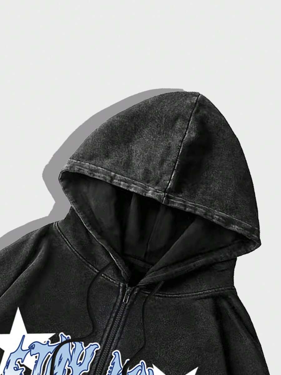 Prep sweat-shirt à capuche simple à manches longues avec impression de lettres et zip devant pour hommes