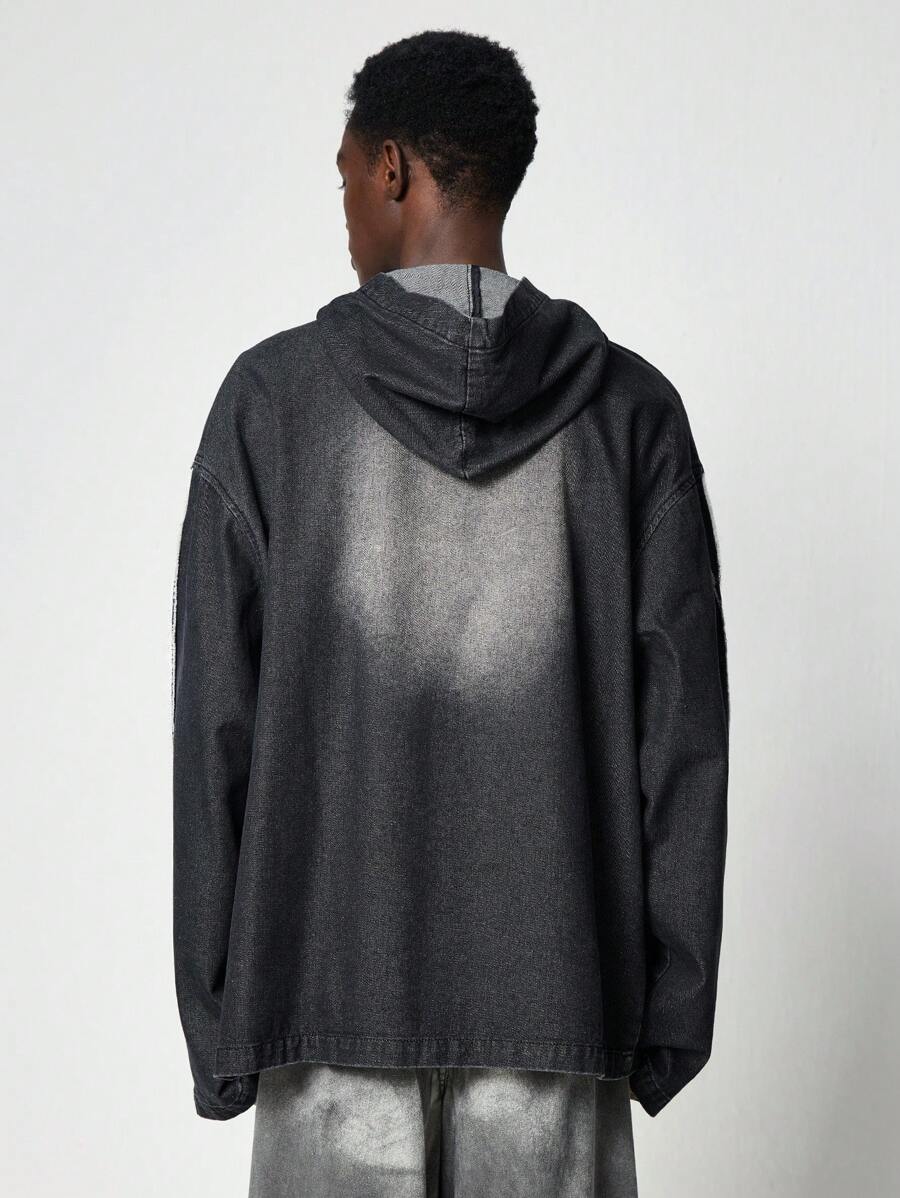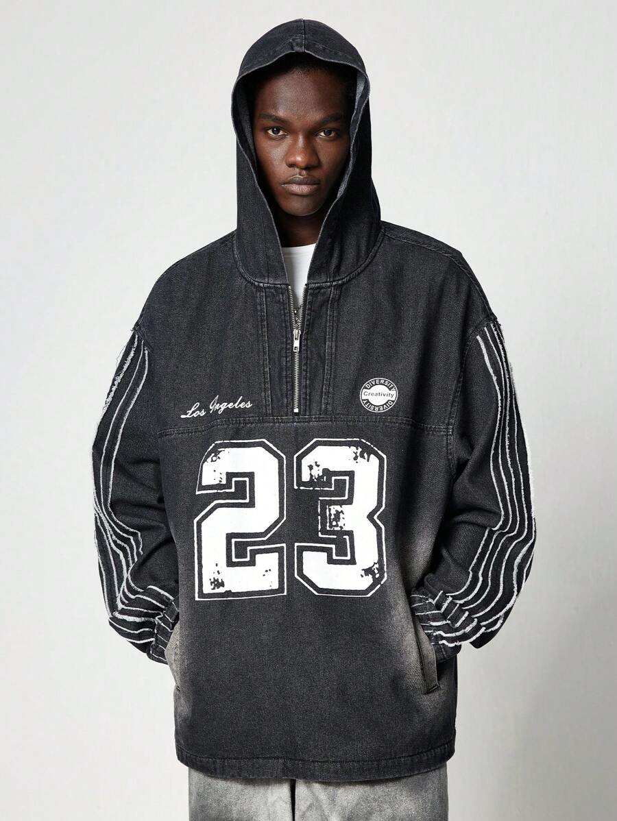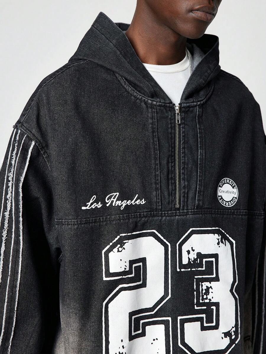 Prep Veste en jean décontractée pour hommes avec zip avant, manches longues et impression de numéro