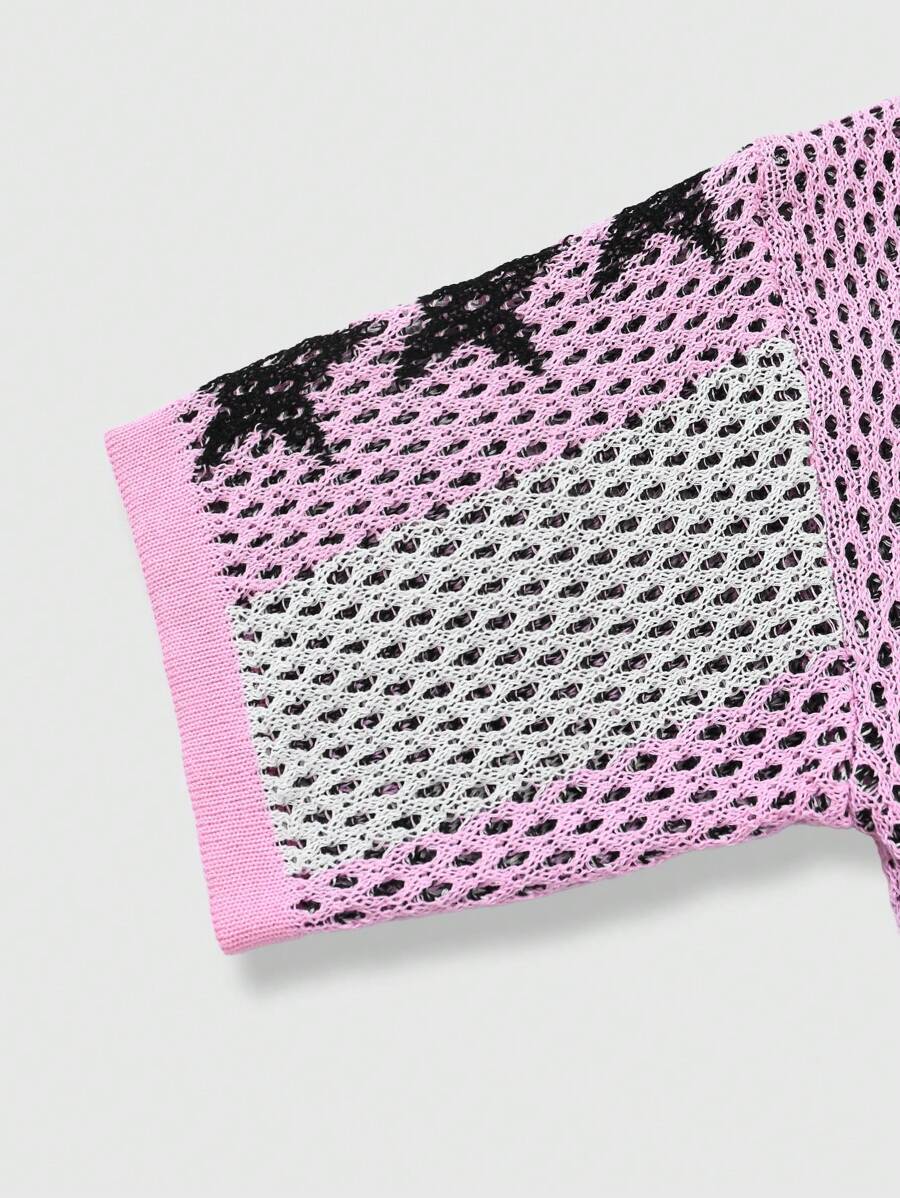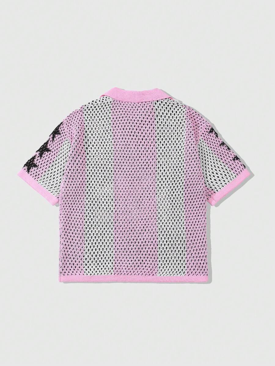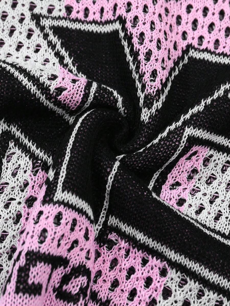 Prep Top tricot casual à manches courtes, style de football, avec motif de lettre en jacquard ajouré pour hommes