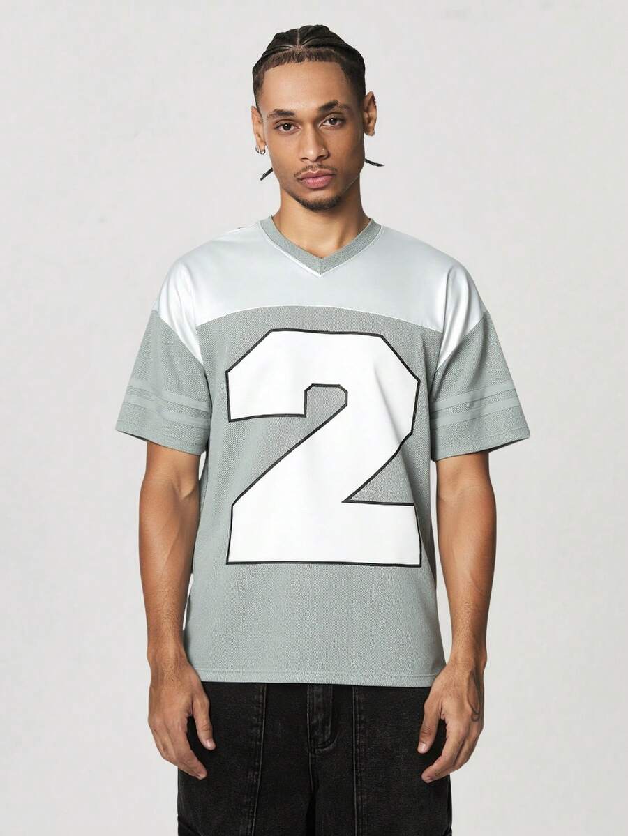 Prep T-shirt de sport en maille à contraste de feuille d'argent style collégial pour hommes, printemps/été