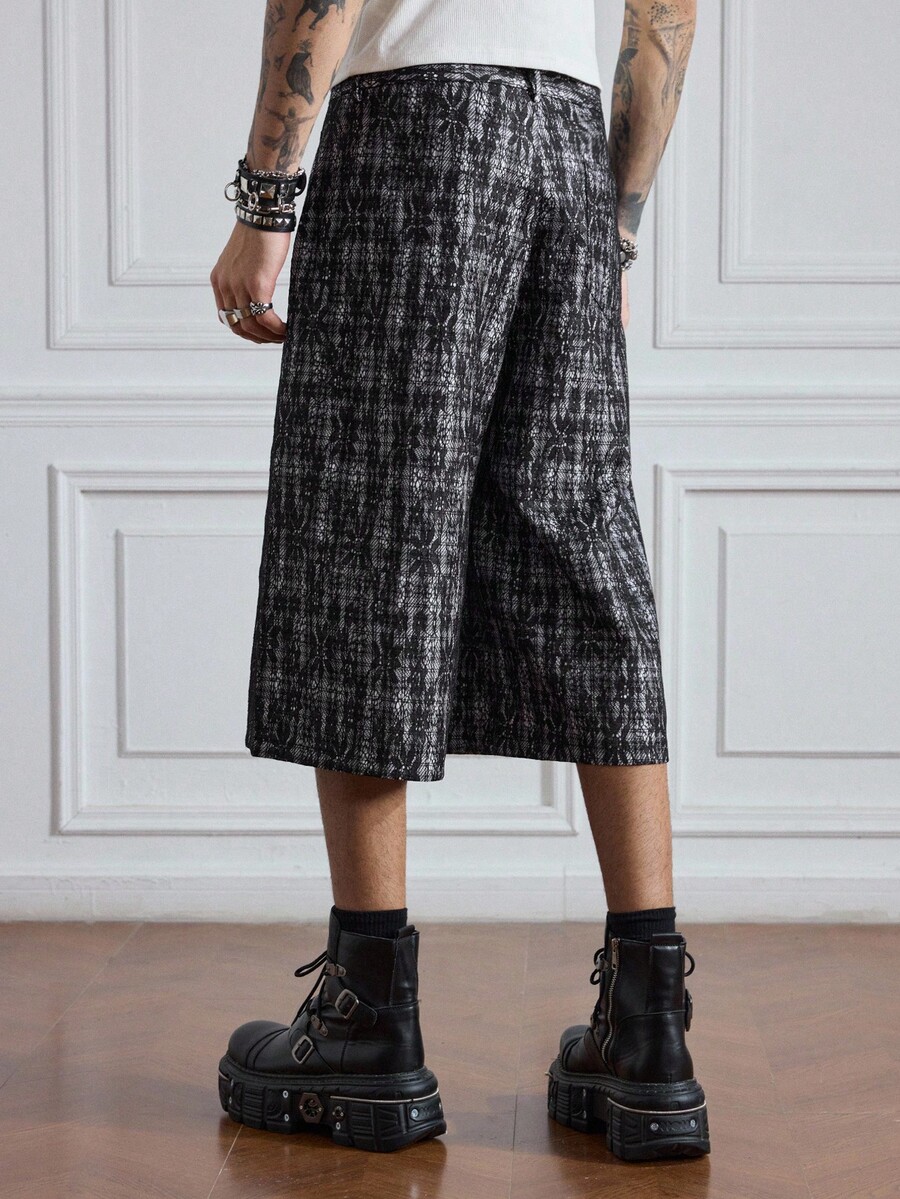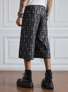 Prep Pantalon capri casual à motif de tartan et de dentelle pour hommes