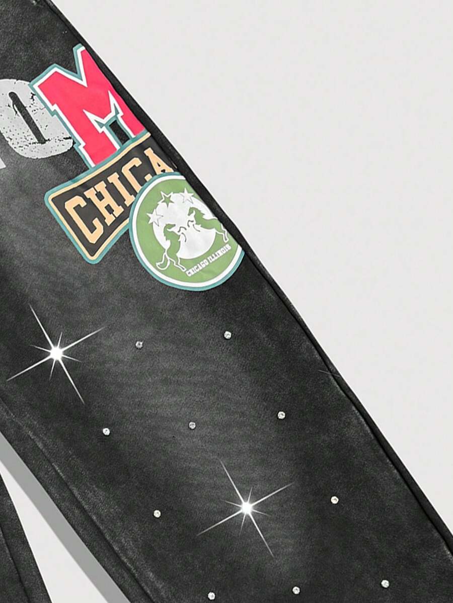 Prep Pantalon de survêtement décontracté pour homme avec taille à cordon et poches, jambes larges avec imprimé de lettre