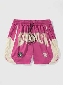 Prep Short de sport, de basket-ball quotidien et de fitness à taille élastique avec imprimé lettre pour hommes, été
