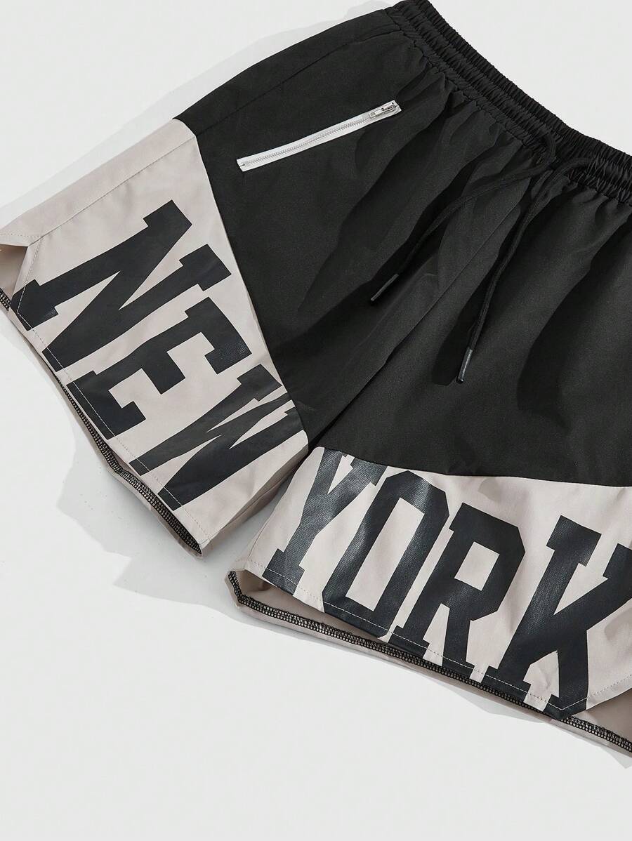 Prep Short décontracté pour hommes avec taille à cordon de serrage et imprimé lettrage