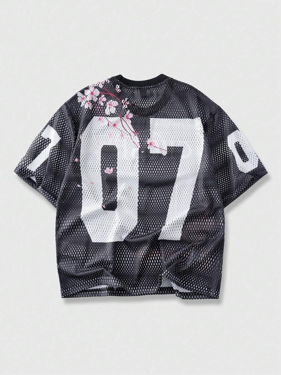 Prep T-shirt d'été décontracté pour hommes avec imprimé floral et numérique, style ajouré