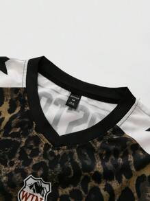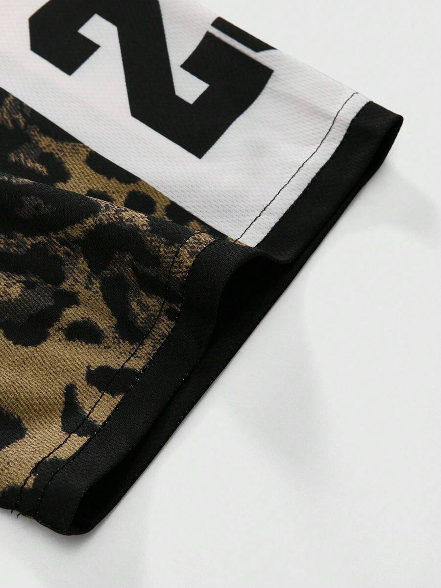Prep Ensemble t-shirt à manches courtes et short casual d'été pour homme, en patchwork avec imprimé léopard et motif numérique