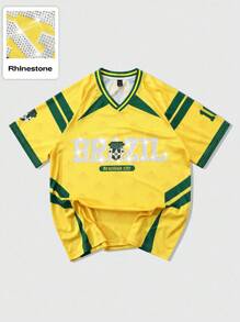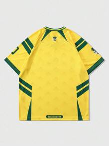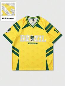 Prep Ensemble de t-shirts pour hommes, t-shirt de football brésilien avec graphique imprimé du badge "BRAZIL" en anglais, streetwear de football à manches courtes