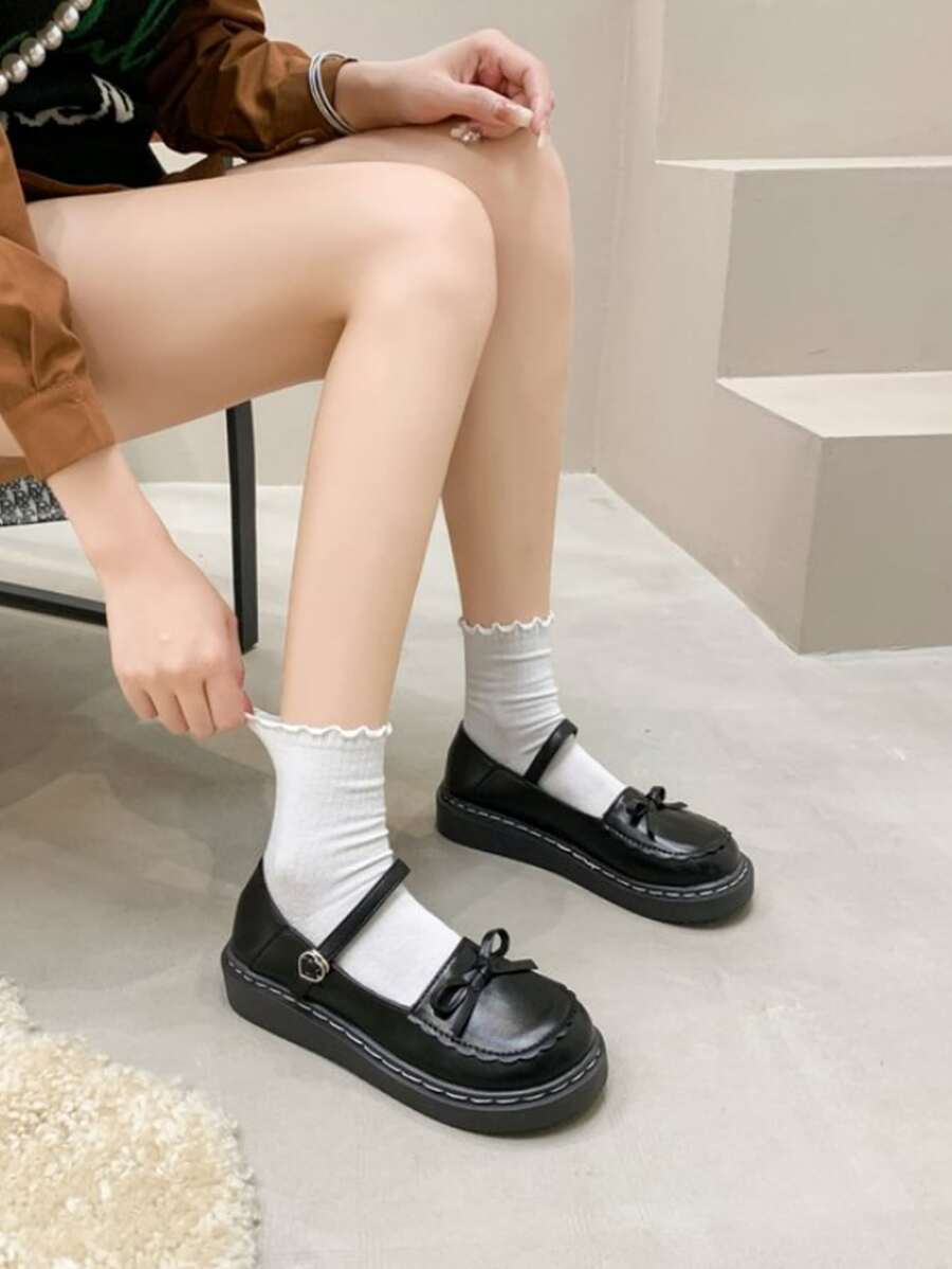 Preppy Noir Babies Femme À Nœud Papillon Plate-Forme Chaussures