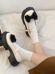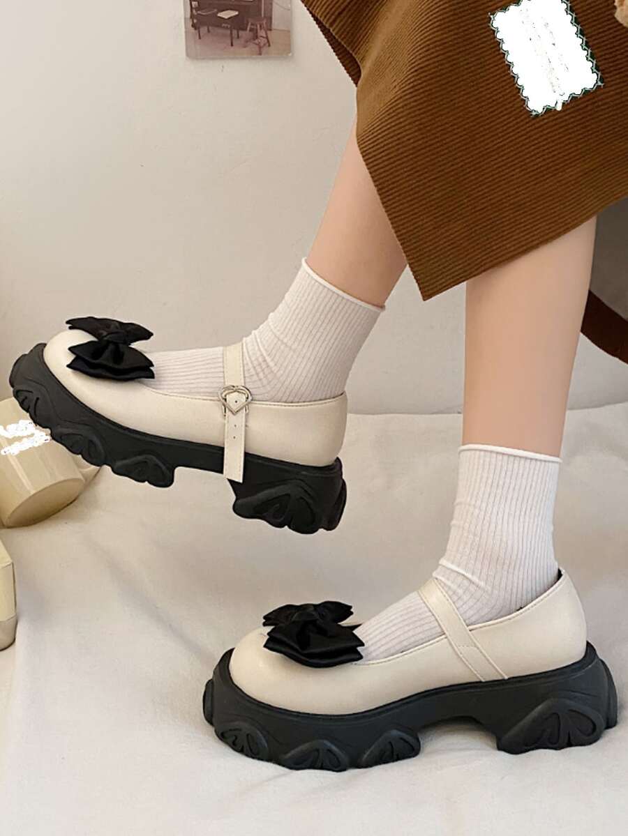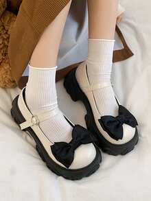 Preppy Blanc Babies Pour Femme , À Nœud Papillon Plate-Forme Chaussures