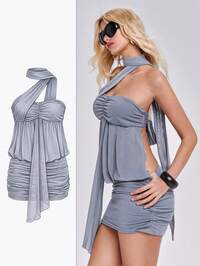 ROMWE Avant Robe mini à motif imprimé, convenant pour le printemps/été, les festivals de musique, le style geisha, la calligraphie chinoise, le nouveau style chinois, sexy, gothique sombre, de rue, vintage, bustier Goth Robe mini à imprimé intégral pour femmes, motifs d'Halloween sombres, horreur, mystérieux, serpent, aigle, papillon de nuit, plante, forêt, violet, bleu, noir