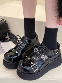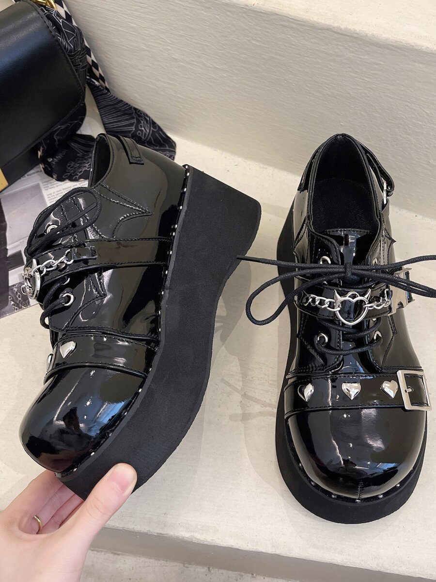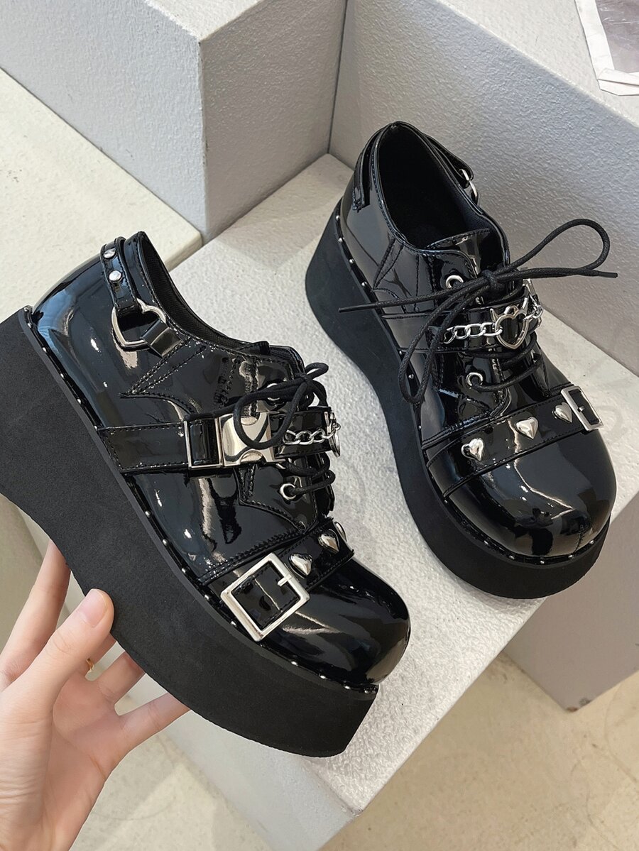 Chaussure compensée punk pour femme,chaussures à chaîne à boucle plate-forme